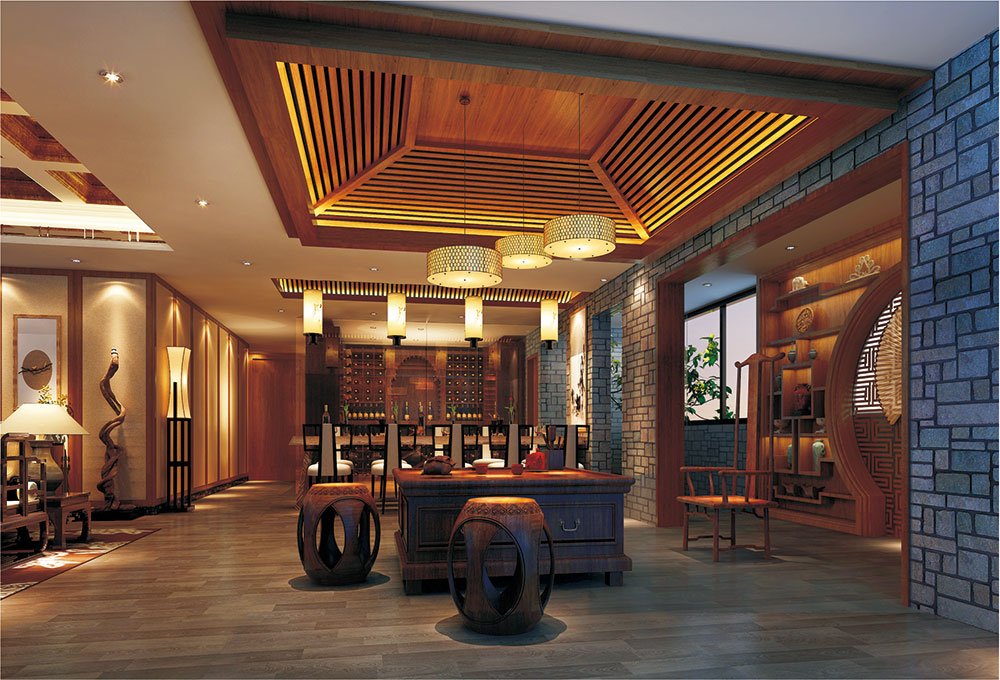 設(shè)計說明:整體設(shè)計運(yùn)用歐式美學(xué)思想結(jié)合中式元素,旨在體現(xiàn)中國傳統(tǒng)文化的深厚蘊(yùn)涵。門廳的設(shè)計不僅起到活躍空間氣氛的效果,更起到連接空間關(guān)系的橋梁作用,開放的茶室及品酒區(qū)以古樸的木質(zhì)、灰磚打造出一個富有文化底蘊(yùn)的會所空間。